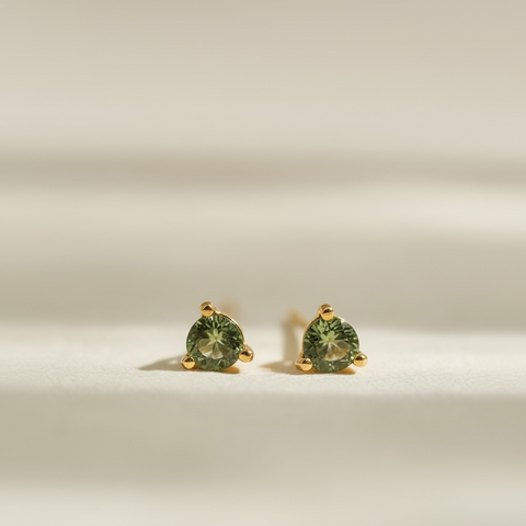 3mm 925 Solid Sterling Silver Studs | Gold Vermeil Extra Thick Plating | Anti-Tarnish | Durable Strong Quality | Natural Faceted Czech Republic Moldavite stones | Authentic | Luxury Gift Packaging | Every shade of Moldavite varies so allow for slight colour variations and uniqueness in every Awaken stone