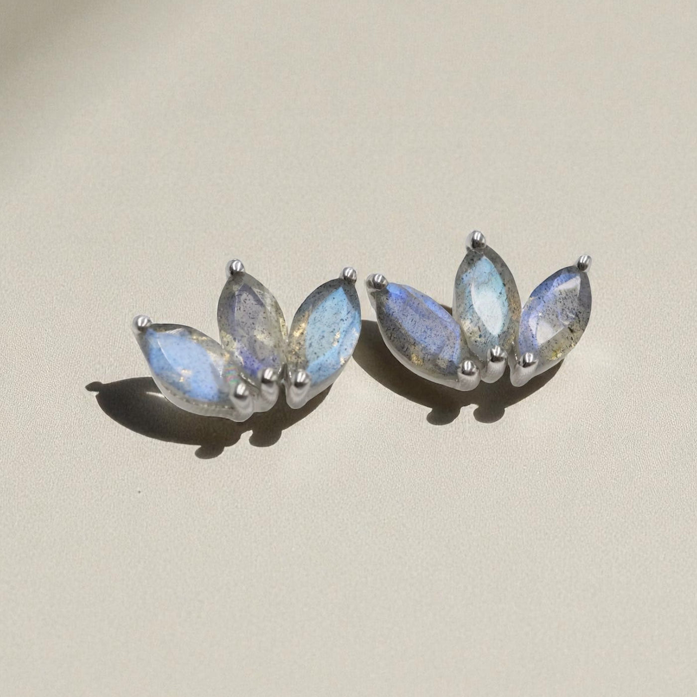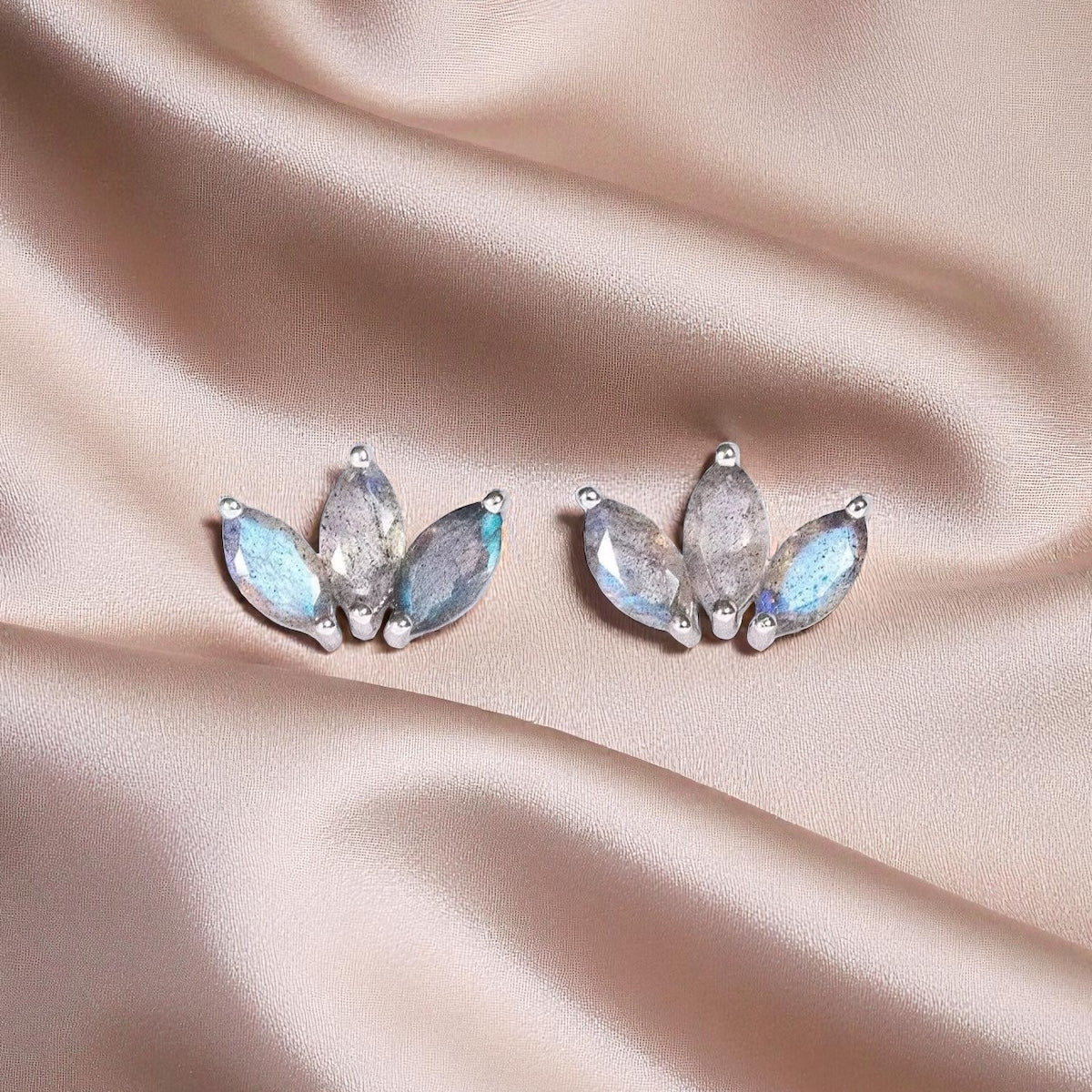 The '333' Marquise Labradorite Silver Studs | Protection | Inner Strength | Transformation