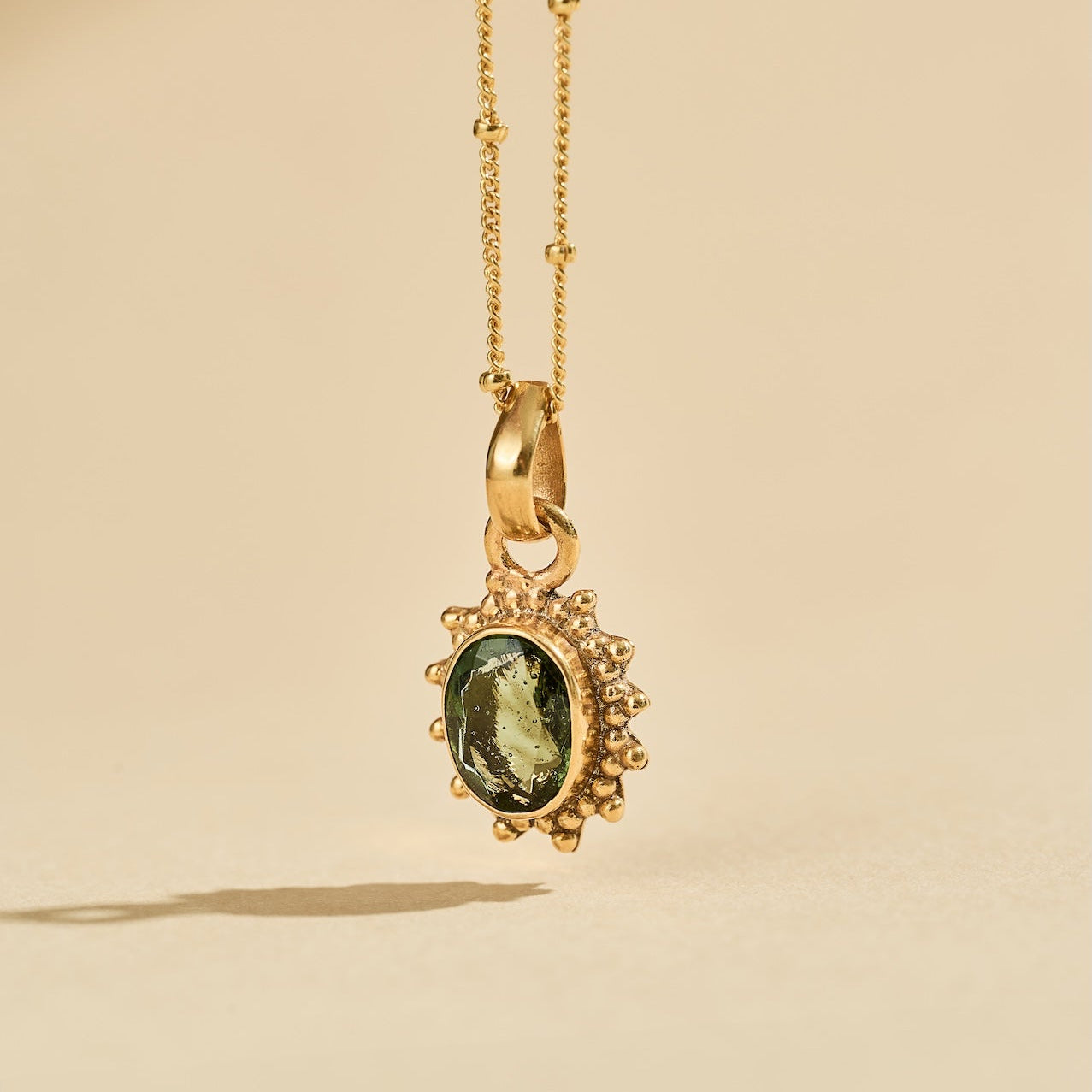 The Gold 'Portal' Polished Moldavite Necklace | Transformation | Expansion | Growth