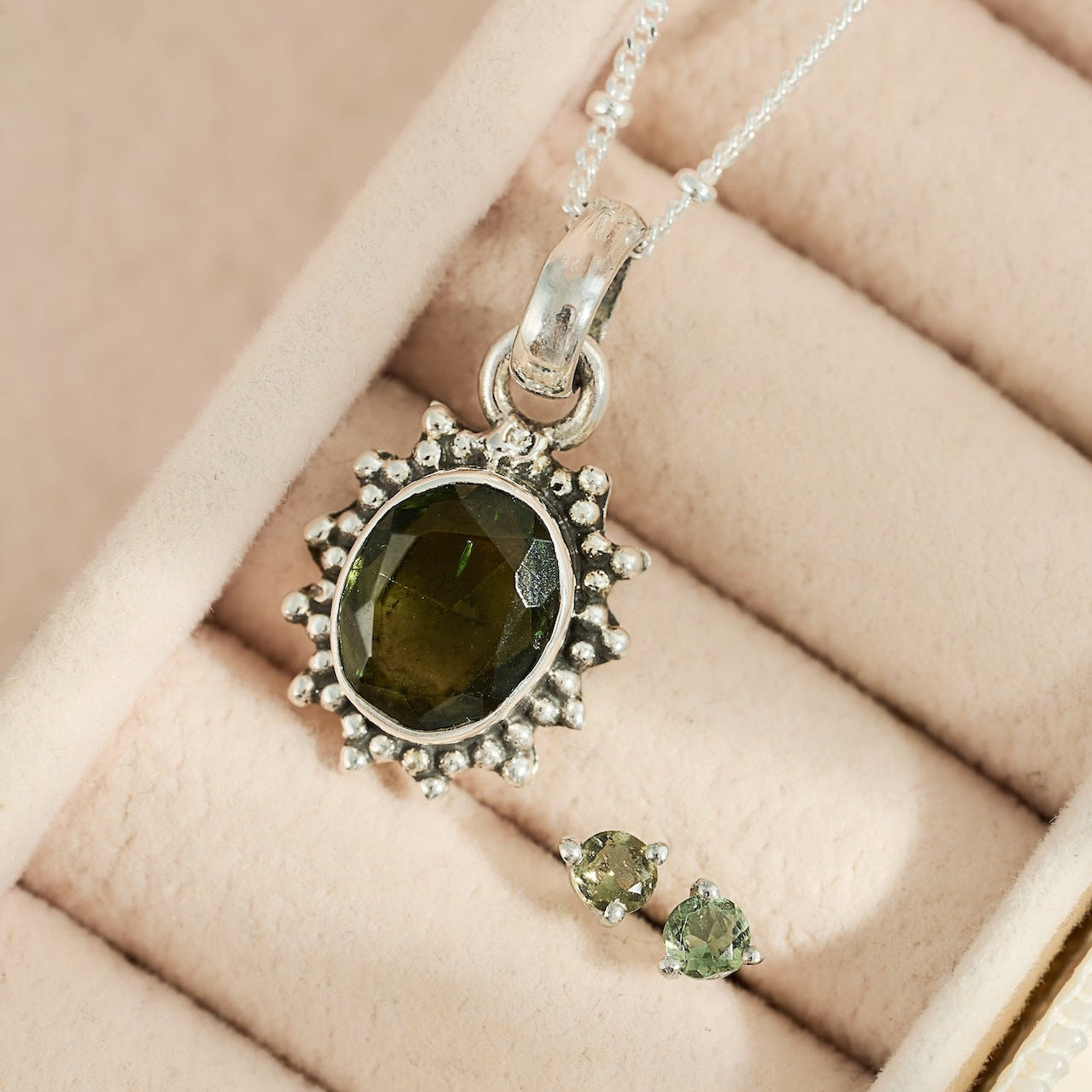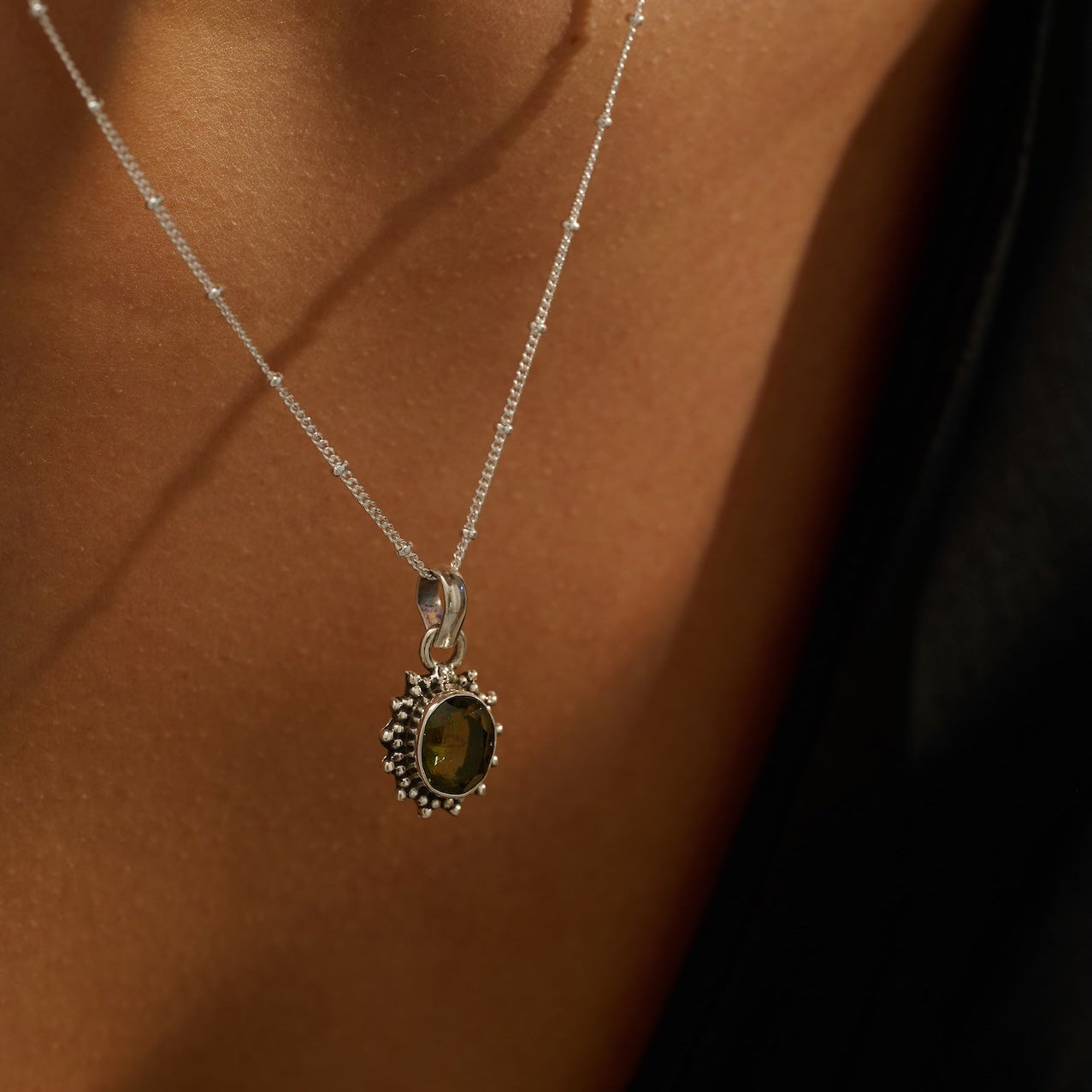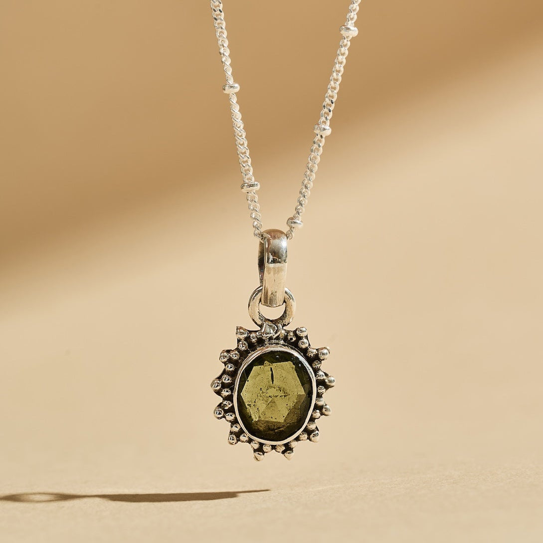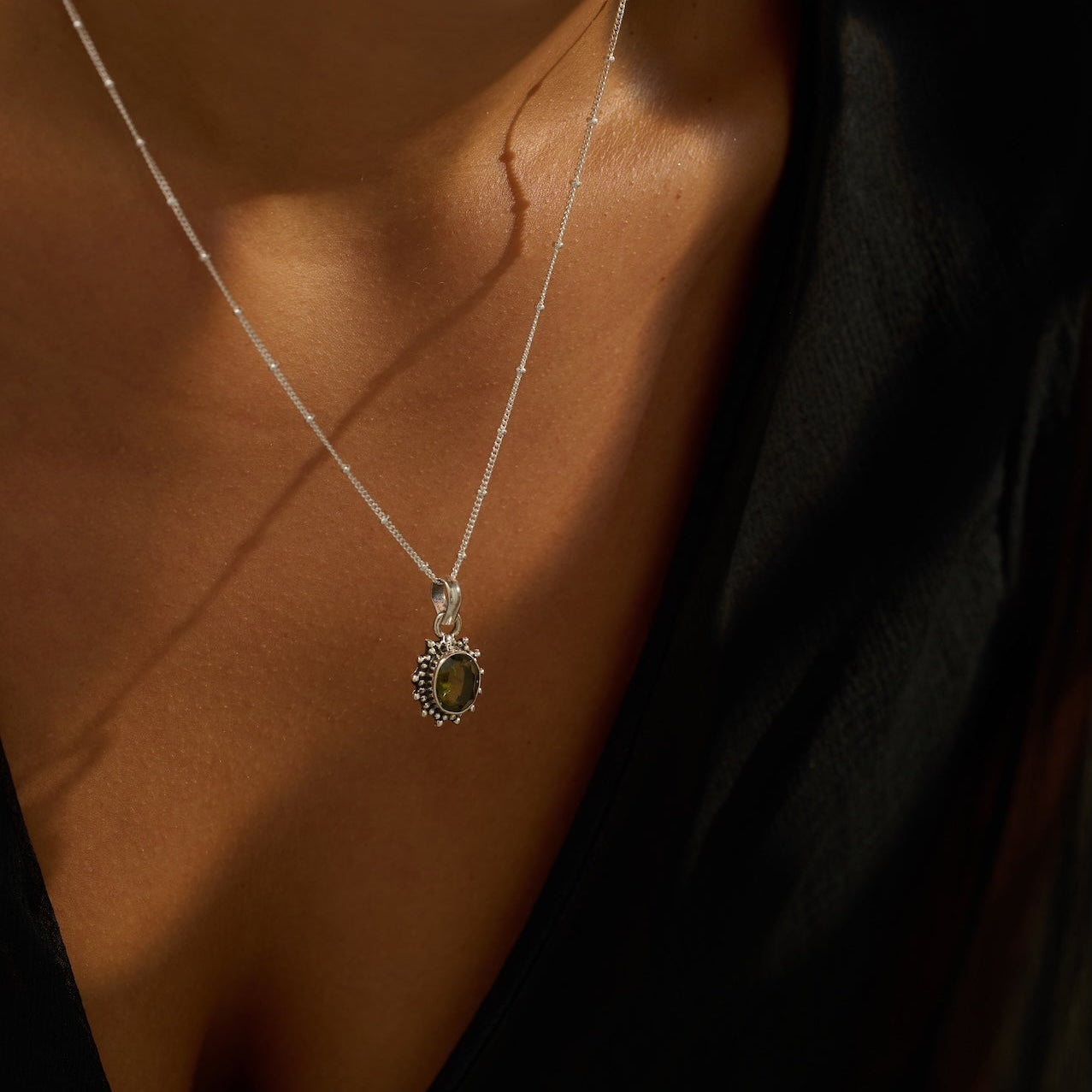 Match this necklace our faceted Moldavite studs and a Black obsidian bracelet to bring in grounding qualities, or combine this necklace Dalmatian Jasper to release any negativity that is holding you back or a beautiful citrine bracelet to welcome in abundance and wealth.