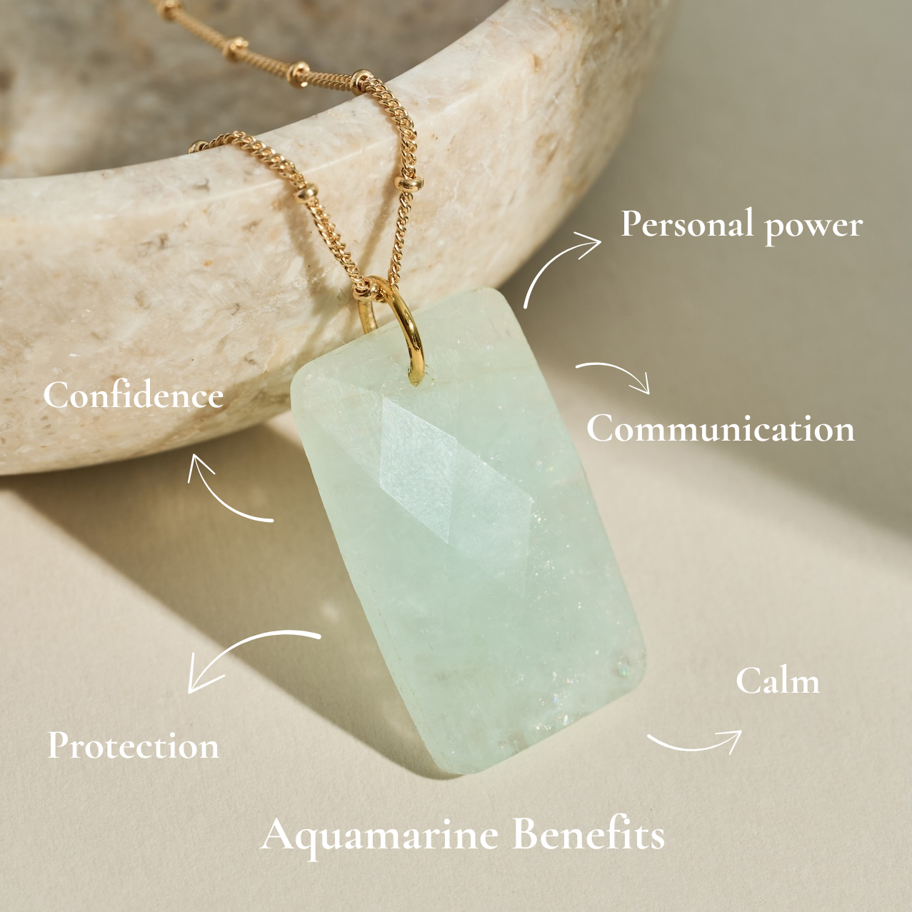 Aquamarine is known for it's power to infuse your life with more clarity, personal power, authenticity and truth. To uplevel self expression, communication, and confidence, enabling you to activate your dream life and go after your goals.