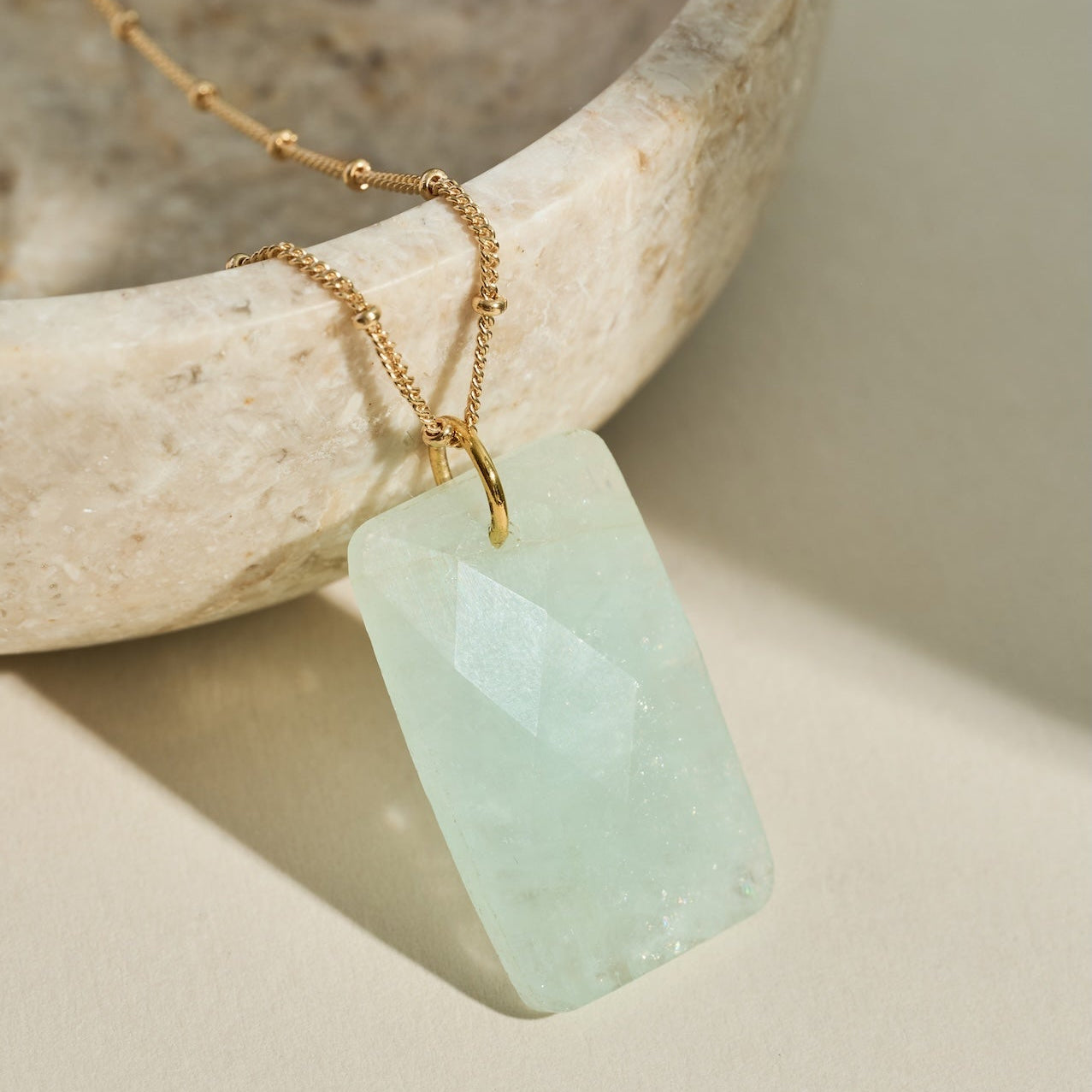 18" 925 Solid Sterling Silver Satellite Chain Coating in a Gold Vermeil 18K anti-tarnish technology coating | Natural Aquamarine stones  | Luxury Gift Packaging | Crystal Meaning Card